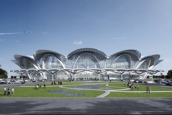 亳州民用機(jī)場(chǎng)航站樓采用中藥文化為主題的造型設(shè)計(jì),建筑面積11600平方米,整體以銀白色鋁板和玻璃幕墻為主要外裝飾材料。從空中看,建成后的航站樓呈現(xiàn)出半圓形花瓣形狀。